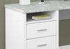 The "L" stands for more than just shape: It stands for "lots" of convenience and room to work. This Pollie desk has a reversible configuration so you can set up the side with the storage unit on the left or right according to your preference. The cubby and two storage drawers (including one for letter or legal-sized hanging files) help to keep the desktop clutter-free. Providing support for the spacious desktop are two robust, rectangular metal legs in a contrasting silver finish. This L-shaped computer desk saves space when used in a corner but is finished on all sides for a polished look wherever it is placed in an office.