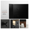 The Prepac Nordik 3 Drawer Nightstand features a Black & Cherry finish, measuring 16"D x 26.5"W x 26.75"H, with three smooth-gliding drawers and a sturdy top supporting 25 lb, blending style and functionality. Crafted from durable, non-toxic materials, it’s perfect for any decor.