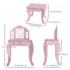 | Key Features | ● The 2 piece set includes a vanity makeup table and matching stool ● Suitable for children's bedroom, playroom and daycare centers ● High-quality MDF wood frame with rounded corners ● 3 clear visible mirrors made of acrylic that don't break easily ● Two mirrors on the side can be rotated for convenience ● Assembly required |