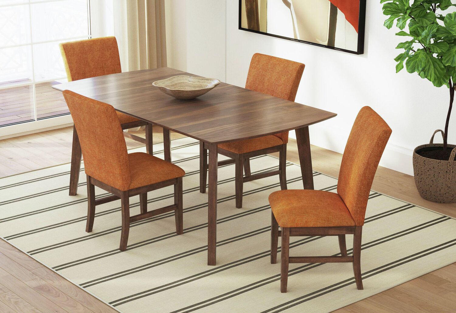 | Primary Construction & Frame Material | Rubberwood, Walnut Rubberwood, also known as parawood or Asian hardwood, is one of the most durable and eco-friendly woods in the furniture market today. Once the tree's latex sap is collected for other industries, rubberwood is recycled into home furnishings. The dense grain makes it stable and strong, and the naturally light undertone accurately holds the intended stain colour. Walnut has a unique growth pattern, which allows for smaller rings to grow inside the wood's normal ring pattern. This creates beautiful patterns used to decorate all types of furniture. |