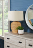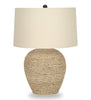 Add a refined boho ambiance to your living room, home office, or bedroom with this stylish and fashionable 25"h table lamp. The airy, textured ginger jar-shaped base is made from durable natural rattan topped with a drum-shaped beige linen shade and finished with a round black finial. With a transitional design and attached to a 5ft transparent cord, this is the perfect-sized accent lamp to place on an end or side table, or on a nightstand. It offers versatile illumination thanks to a 3-way switch that holds a single bulb (not included) for a maximum outage of 100W/120V, allowing you to adjust the lighting ambiance in a living room, home office, or bedroom. Made with natural quality materials ensuring longevity, this lamp includes a 2-year limited warranty against any manufacturer's defects for a worry-free purchase.