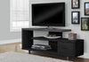 Watch your living space take shape when this Art Deco-inspired Rene TV stand is introduced. Set in a rectangular 'G' shape, the top shelf extends and overhangs above the second shelf, which is suspended over the bottom shelf. Strong and sturdy, this stand is constructed with thick panels in a grey woodgrain-look for the top shelf with black finish on all other surfaces. The shelves provide ample room for media consoles and home decor items, while the drawer keeps batteries and remotes tucked away. Give your room a little extra style with the chic look of the Rene TV stand.