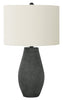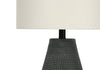 Bring some contemporary boho glamour to any room with this stylish 24"h table lamp. A beautiful blend of a vase-shaped, textured finish black resin base with a raised dotted pattern and ivory fabric shade, and finished with a round silver metal finial on top, this lamp is a great way to brighten any bedroom, living room, entryway, or office. With a 3-way switch that houses a single bulb (not included) for a maximum output of 100W/120V, this lamp offers three levels of illuminating light for creating the ambiance you desire. Attached with a 6ft black cord, this is the perfect functional accent to place on an end or side table, console, nightstand or bedside table. Made with quality materials, this lamp includes a 2-year limited warranty against any manufacturer's defects for a worry-free purchase.