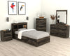 Riley Mates Bed with Bookcase Headboard Set for Kids, Made in Canada, Grey - Twin Size