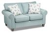 Ready to play host for your friends and family, this marine-coloured Scarlett loveseat turns your living room into the perfect entertaining space. Chenille fabric covers the furniture frame with a light blue hue to create a cozy area. Matching fabric piping outlines every edge of this piece, including the high-density foam cushions you'll want to relax on. Classic features like rolled armrests allow this piece to pair well with many different decor styles. With four throw pillows for extra comfort, this Scarlett loveseat turns your home into an inviting oasis.
