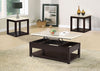 Enrich your home with this fabulous and functional Sicily coffee table. Finished in deep chocolate and featuring a faux-marble tabletop in creamy beige, this piece is designed to enhance your living space. Underneath the impressive lift-top you’ll find three spacious compartments for home essentials, while the table’s caster wheels make moving this piece convenient. Complete the look by pairing this piece with the matching end table (sold separately).