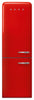 This bottom-freezer refrigerator from Smeg is designed with a chic retro style and equipped with the latest technology for top performance. Featuring chrome interior finishing, electronic temperature control, three freezer drawers, a multi-flow cooling system and LED lighting on both sides of the cabinet, this fridge is ready to impress. Plus, the no-frost freezer section offers a spacious capacity with the added usefulness of a fast-freeze drawer. Fusing an unmistakable sense of aesthetic flair with peerless manufacturing, Smeg knows how to deliver style and substance in equal measure.