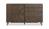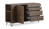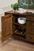 | Storage Options | Four storage drawers, cabinet with adjustable and reversible wine rack, and open side shelves. |
