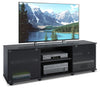 Give your big screen TV a home as stylish as it deserves with this Sonax 60-inch television stand. Finished in raven black, this low-profile stand is sure to match the look of your electronics without appearing too out-of-place or "noisy." In front, three storage locations offer plenty of room to keep your electronics systems, movie collection or TV accessories, including an adjustable centre station. On either end, elegant glass doors with magnetic catches help you keep the look of your entertainment area clean and uncluttered.