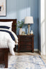 Settle in for the night with this beautiful Sonoma bedroom set! Made with durable and eco-friendly rubberwood, this set is finished in a lovely burnished mango for that down-home country feel. Antiqued, dark pewter hardware offsets the finish stunningly, and the raised wood detailing on the drawers and bed adds a gorgeous finishing touch to this traditional bedroom set.