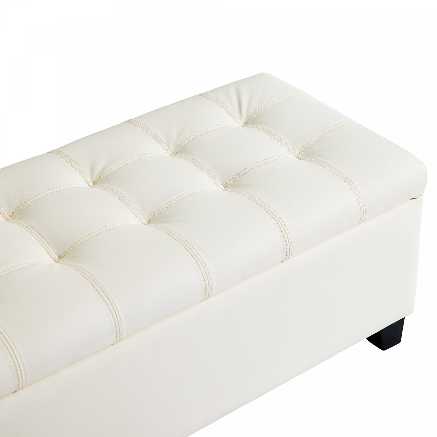 The 48" Storage Ottoman Bench is a stylish and functional addition to your home. With ample storage space, it helps keep your entryway, bedroom, or living room organized by storing blankets, clothes, and other essentials. The modern minimalist design features tufted cushions and a sturdy wooden frame with solid rubberwood legs, offering both comfort and durability. Perfect for use as a footrest, storage box, or seating area, it combines convenience and style to elevate your home decor.