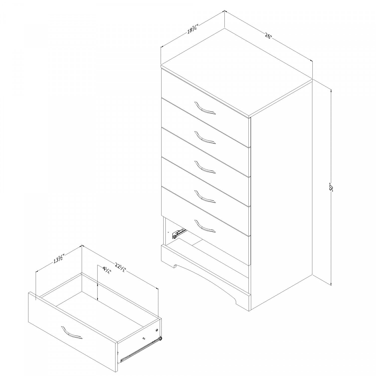 Contemporary lines and finish. This step one 6-drawer dresser has a timeless look and blends in easily with any decor. The contemporary lines are softened by the curved kick plate, and metal handles add character and value to the furniture. The neutral, modern style makes it suitable for men’s or women’s, providing plenty of storage space in this attractive piece of furniture. Practical storage and organization this bedroom furniture collection was designed just for tighter spaces! Featuring 6 practical drawers with metal handles, the dresser provides plenty of room for clothes, linens or general storage. The drawer slides are made of metal and include dampers and catches.