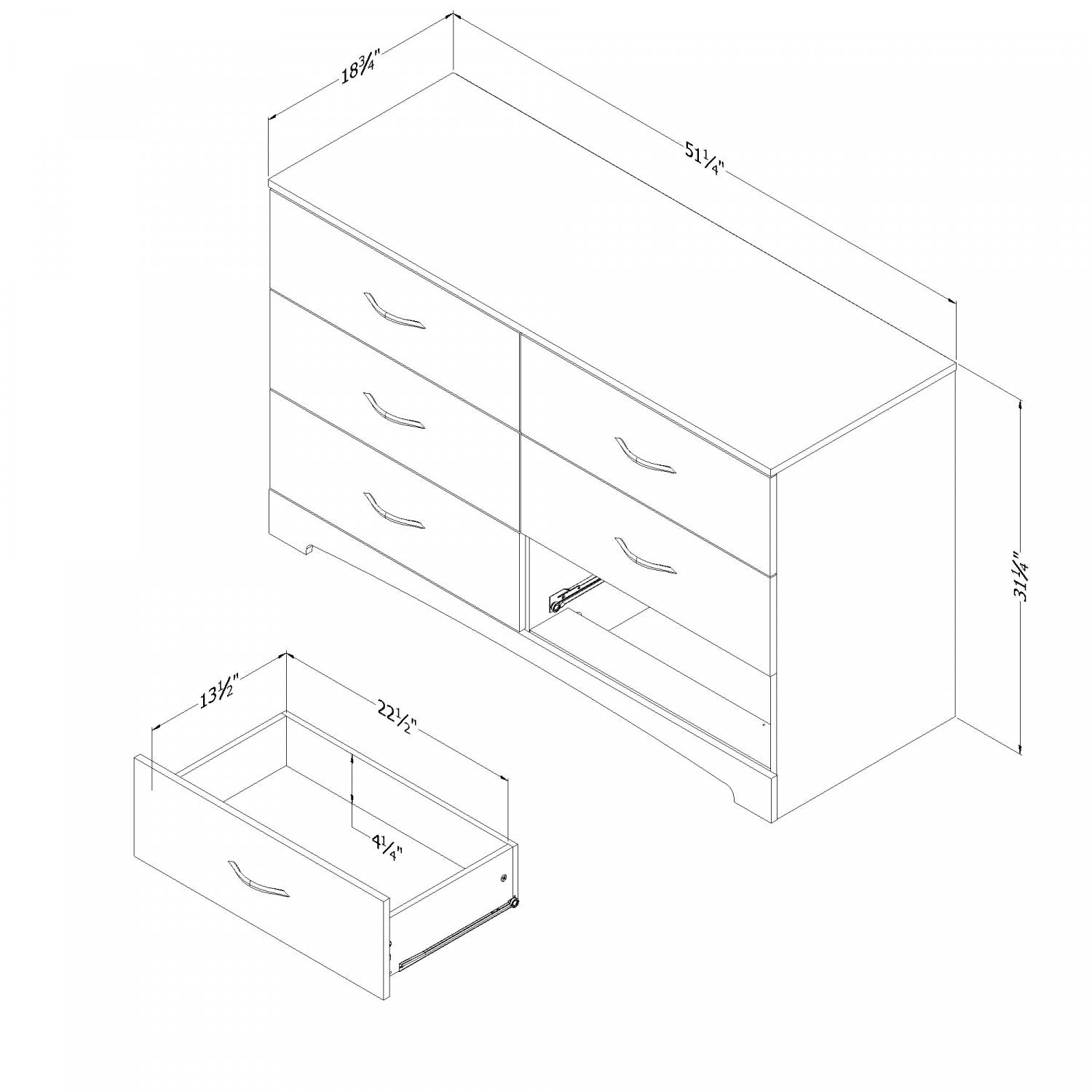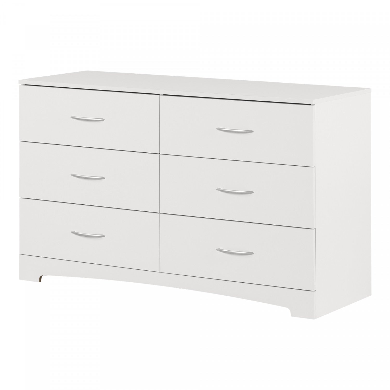 Contemporary lines and finish. This step one 6-drawer dresser has a timeless look and blends in easily with any decor. The contemporary lines are softened by the curved kick plate, and metal handles add character and value to the furniture. The neutral, modern style makes it suitable for men’s and women’s, providing plenty of storage space in this attractive piece of furniture. Practical storage and organization this bedroom furniture collection was designed just for tighter spaces! Featuring 6 practical drawers with metal handles, the dresser provides plenty of room for clothes, linens or general storage. The drawer slides are made of metal, allowing for smooth and quiet acccess.