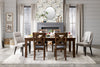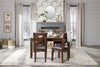 Settle in for a relaxing dinner with the simplicity of the Talia grey-brown five-piece dining set. A weathered, dark grey finish highlights the natural grain of the solid rubberwood and mango wood veneers. The black faux leather seat cushions stuffed full of high density foam gives you cozy spots to enjoy your favourite comfort food. Expecting company? Drop the removable leaf in to extend the table surface by another 18 inches to make space for more guests. Add the Talia to your dining space, and make your next family meal one to remember.
