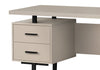 Feel like a boss in your office when you sit down to work at this Teagan reversible desk. The thick-panel floating desktop provides generous room for a laptop and writing materials and allows you to use the tops of the drawer units as extra surface space. Finished in wood-look laminate, this piece has two small drawers and one large drawer with a bar for hanging files, offering space for items to reduce clutter. For flexibility, the drawer units are reversible and can be installed on either side. Supporting the desk are metal legs in a contrasting finish with a modern, stylish U shape.