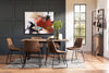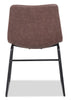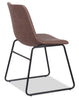 Enhance your next dinner party with the simple beauty of the Tess brown accent dining chair. Covered in luxurious faux leather and filled with high-density foam, this inviting armless scoop seat is ready to cradle you. Thin legs of black, powder-coated iron help keep you stable, no matter how exciting the party is. Decorative zigzag stitching lines the edge of the chair in a contrasting colour to add an extra splash of style. Add the refined sparkle of the Tess chair to lighten up your dining space, and let your next big family dinner shine.