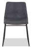 Enhance your next dinner party with the simple beauty of the Tess grey accent dining chair. Covered in luxurious faux leather and filled with high-density foam, this inviting armless scoop seat is ready to cradle you. Thin legs of black, powder-coated iron help keep you stable, no matter how exciting the party is. Decorative zigzag stitching lines the edge of the chair in a contrasting colour to add an extra splash of style. Add the refined sparkle of the Tess chair to lighten up your dining space, and let your next big family dinner shine.