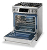 | High-Powered BTU Burners: Tilt Panel: Commercial Convection Fan: Air Fry: Multiple Cooking Modes: Continuous Cast-Iron Grates: Self-Clean: |