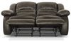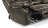 Let this grey-hued Toreno power reclining loveseat be the shining star of your home's comfort and style universe. Featuring Italian-finished genuine leather on the entire seating area, this piece will invite your guests to unwind on this luxurious upholstery. Underneath the leather is robust high-density foam, ready to embrace your tired body at the end of your busy day. Push the power recline buttons on the loveseat's side to lie back and make your lounge time feel even better. Stretch out and get cozy on this elegant Toreno power reclining loveseat.