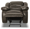 Let this grey-hued Toreno rocking reclining chair be the shining star of your home's comfort and style universe. Featuring Italian-finished genuine leather on the entire seating area, this piece will invite your guests to unwind on this luxurious upholstery. Underneath the leather is robust high-density foam, ready to embrace your tired body at the end of your busy day. Pull the lever on the seat's side to lie back and make your lounge time feel even better. Stretch out and get cozy on this elegant Toreno reclining chair.