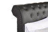| Accent Details | A diamond-shaped pattern of button tufting and lines of shiny metal nailheads decorate the headboard. |