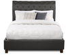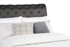 | Accent Details | A diamond-shaped pattern of button tufting and lines of shiny metal nailheads decorate the headboard. |