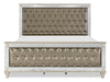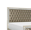 Tyra Panel Bed with Headboard & Frame, Glam, Vegan Leather, Button-Tufted, Champagne - King Size