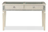 | Accent Details | Glass inset top, mirror trim and faux crystal hardware. |