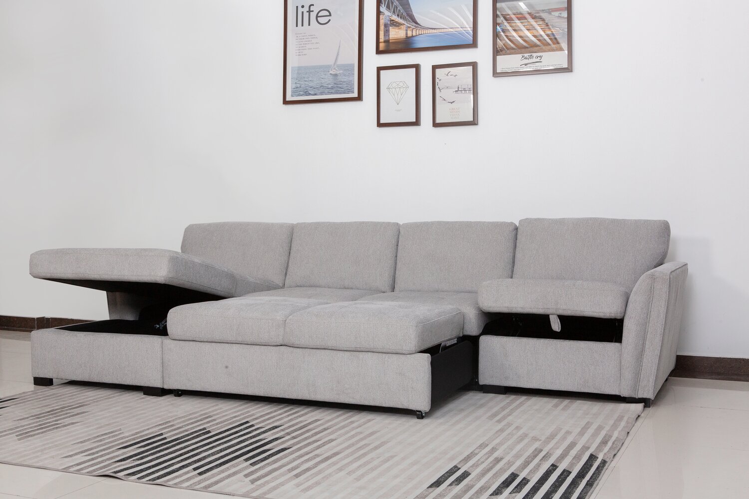 Vault 3-Piece Left-Facing Sectional with Sofa Bed Loveseat, Storage Chaise and Storage Chair - Grey