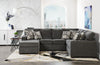 | Accent Pillows | Six accent pillows in a patterned charcoal, beige and white fabric. |