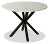 Dine at this fair Verona round table and enjoy the beauty it brings to your home. The circular surface is covered with white cultured marble for a classically modern look. Veined with shades of grey, every tabletop will be unique to your dining space alone. Each of the black metal legs meet under the slab and skew outwards from the centre to add geometric interest. Ideal for smaller spaces looking for large style statements, set the scene with this dramatic dining table.