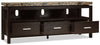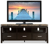 The rectangular, sleek modern faux marble TV console’s design and dark wood look makes it an attractive piece for any décor. The faux marble top gives a solid touch of elegance and refinement. A convenient shelf, 3 nooks and 3 drawers, with attractive rectangular drawer pulls, provide storage for components, games, and DVD's.