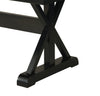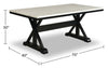 | Accent Details | Black table bases are connected by a classic wood trestle under the white and grey tabletop. |