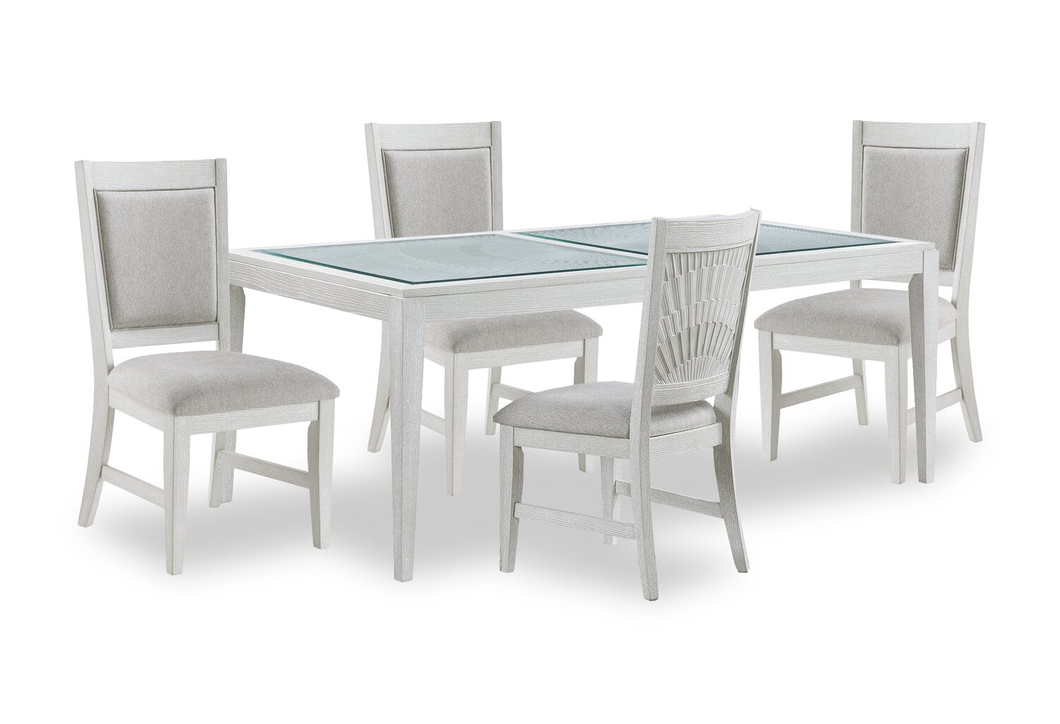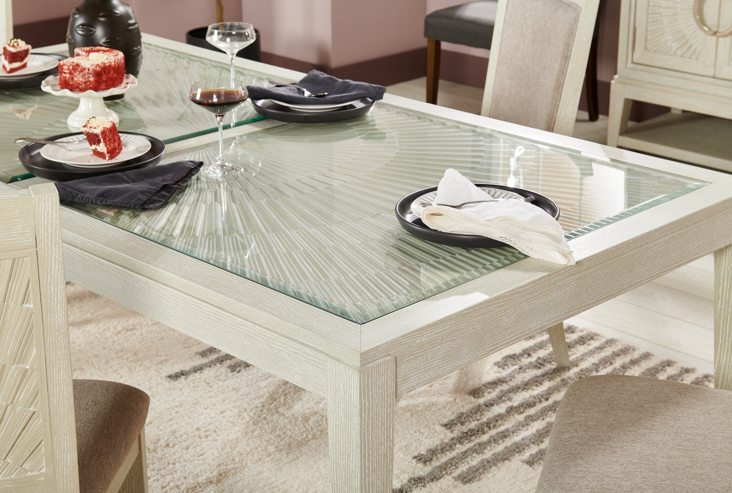 | Accent Details | A geometric pattern under the glass panels adds unique visual interest. |