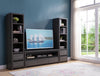 Cozy up for movie night with this Walker TV stand. Featuring ample storage space via its three drawers and shelf, all your entertainment needs will be perfectly within reach. Store gaming consoles or decor on the shelf, and tuck away remotes, controllers, manuals and more in the drawers to keep everything within reach but organized. Openings in the back of the stand allow for clutter-free cable management, while the top can hold TVs up to 70 inches. The distressed grey finish will create a cozy atmosphere within your home and be sure to serve you for years to come.
