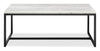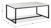 | Accent Details | A matte black frame complements the light tabletop. The white marble top is elevated by subtle black undertones. |