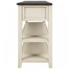 Bring timeless elegance into your living room with this console table. Crafted with a durable pine solid wood frame and smooth engineered wood tabletop, it combines mid-century charm with modern practicality. The three drawers keep everyday essentials neatly tucked away, while two spacious open shelves provide versatile storage for books, baskets, or decor. With its distressed finish and refined silhouette, this table adds warmth and character to any home. Perfect as an entryway piece, sofa table, or living room accent.