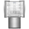 Get the space your family needs with this Whirlpool French-door refrigerator. With its large capacity, adjustable door bins and dedicated pantry drawer you’ll have all your favourite foods stored and organized for easy access. The factory-installed icemaker keeps refreshing, cubed ice at your fingertips but is hidden inside the freezer to keep the external profile sleek and uncluttered. Finally, you can rest assured that you’re doing your part for the environment (and your wallet) with this refrigerator’s ENERGY STAR® certification.