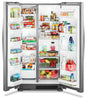 This 25-cubic-foot Whirlpool side-by-side refrigerator is built for families, with storage spaces purposefully designed to make it easy for you to fit and find everything inside. LED lights keep food illuminated even in dark corners, while the electronic temperature controls make it easy to adjust your fridge whenever it’s needed. Get flexible placement options with the adjustable gallon door bins and use the wall-to-wall frameless shelves to store platters and wide items. The hidden hinges create a seamless look on the outside, making sure this refrigerator looks as good as it works.