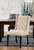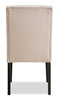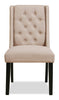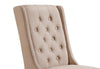 Give the head of the table a worthy seat with this York wingback dining chair. Covered in a lovely display of neutral fabric, this soft seat invites you to sink back into its supportive frame. Diamond tufting along the backrest adds a textured look while the wingback design caps off the traditional style. Of course, a chair's best quality is its comfort – and in this way the York gets top marks. High-density foam cushions the seat and backrest for a level of coziness you won't soon forget.