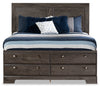 Embrace the feeling of contemporary style with the Yorkdale grey queen storage bed. A soft grey finish made from engineered wood creates a neutral base to pair perfectly with almost any room decor. A sleek, tall headboard features a simple two-panel design that lets the alabaster oak finish colour shine through. Built into the lower half of the bed are a dozen drawers to help you keep extra blankets or pyjamas close at hand. Let the sleek, modern design of the Yorkdale grey bed help you build the perfect space for rest and relaxation.