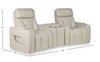 Transport yourself to a state of elevated relaxation with this Zen power reclining massage home theatre sectional. As you set to immerse yourself in a great film, smooth faux leather and high-density foam cushions envelope you in utmost comfort. Set the mood with soft LED lighting and bask in the convenience offered by the wireless USB charging port. Plus, keep your snacks and remotes close by in the storage console and armrests. Enjoy simple heated seating, therapeutic massaging and power reclining as you treat yourself to the best form of relaxation with the Zen and infuse tranquility into your home.