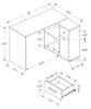 This Zoe desk offers an abundant work surface in a compact L-shape design. Ideal for small spaces and finished on all sides, this piece can be set in a corner or almost anywhere in your office or teen’s bedroom. Storage is plentiful with two large open cubbies perfect for placing books and decor, as well as a top drawer and lower cabinet that you can use to keep office supplies, paperwork and other essentials. The silver hardware provides a dash of sheen to this modern piece.